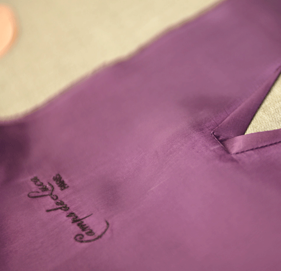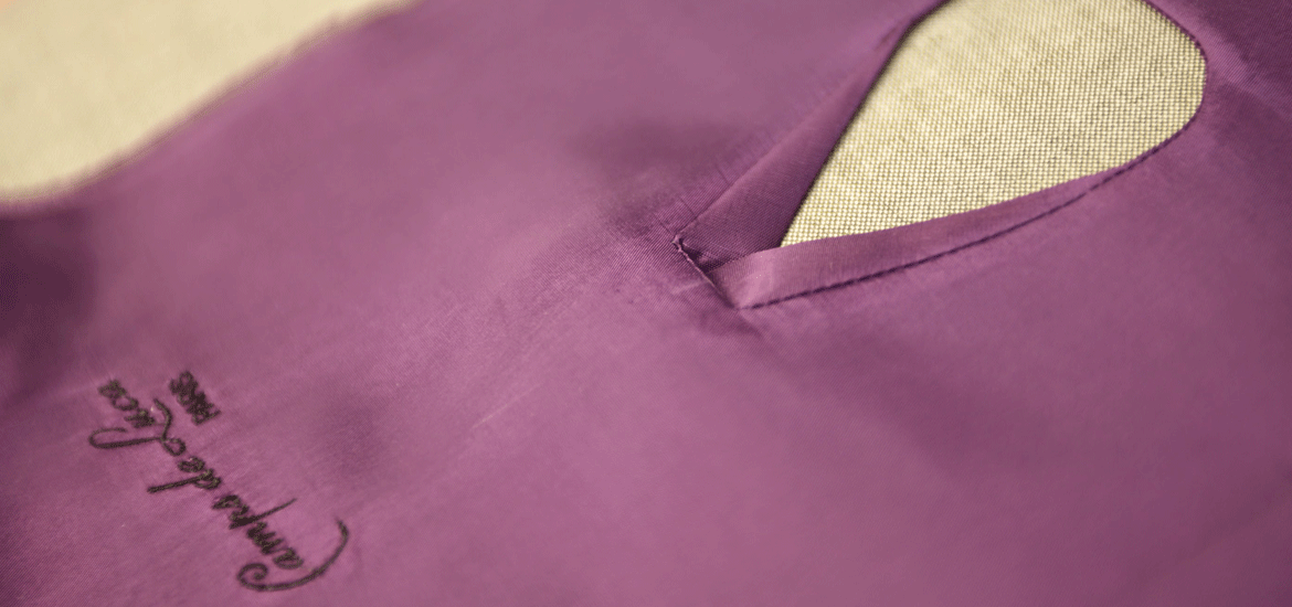 The collar is sewn on by hand, in the style of Camps de Luca