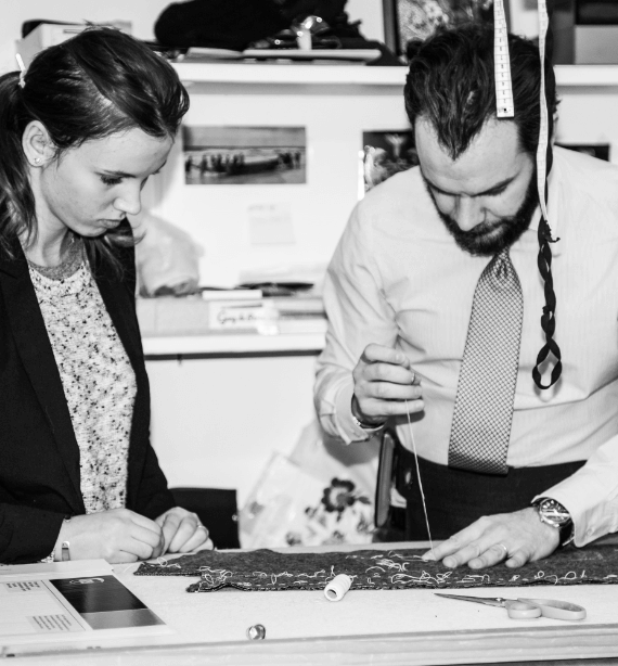 It takes at least 80 hours and five people to make a suit, and it´s the solidarity between the different talents and skills that accounts for its quality. Each step requires a specific attention driven by one of our expert